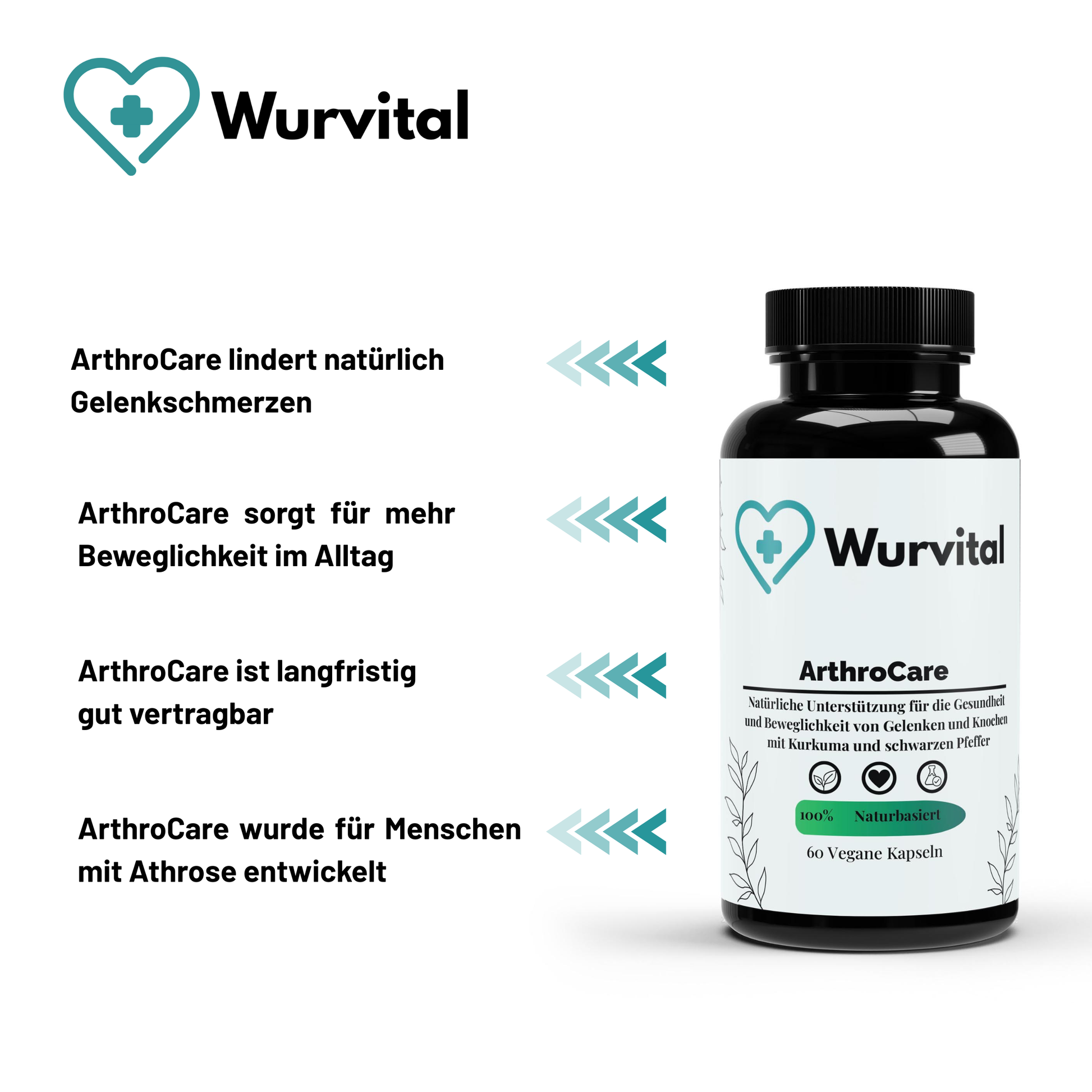 Der entscheidende Unterschied ist die Bioverfügbarkeit. Viele Billigprodukte nutzen einfaches Kurkuma-Pulver, dessen Wirkstoff Curcumin vom Körper kaum aufgenommen wird. ArthroCare nutzt einen hochwertigen Extrakt plus den patentierten Piperin-Booster (aus schwarzem Pfeffer), der die Aufnahme und damit die Wirksamkeit im Gelenk garantiert.